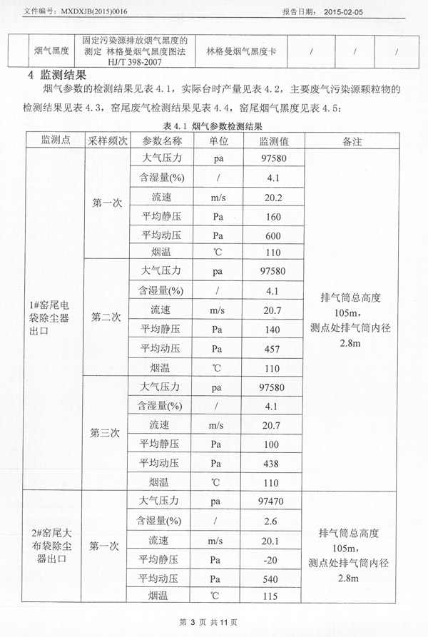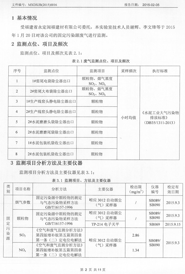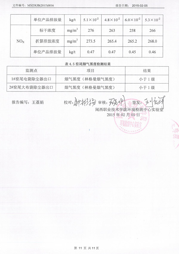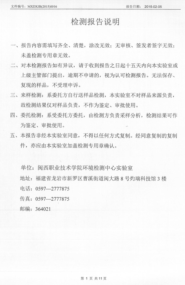 2015年1月環(huán)境檢測(cè)報(bào)告